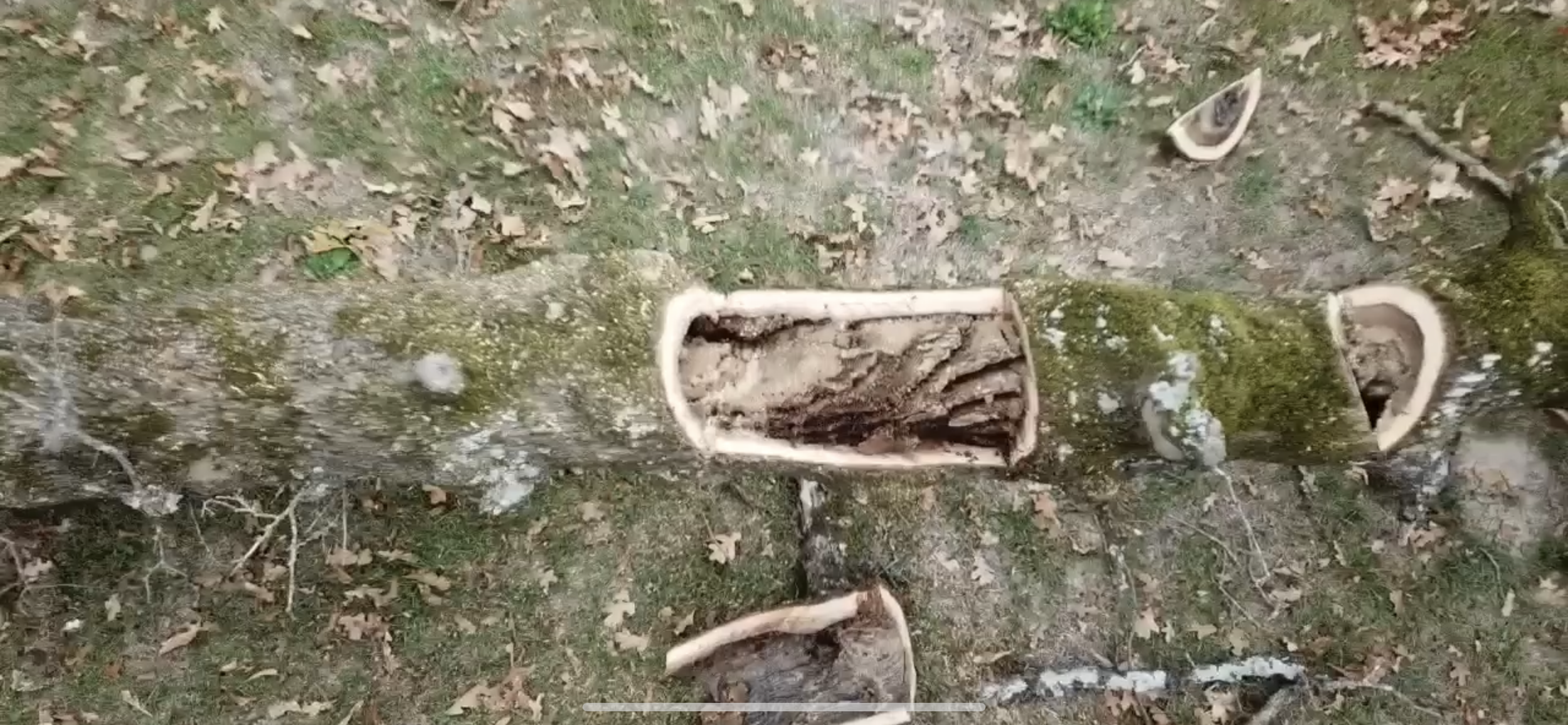First Cut into the Tree. Sarah Hays with the Smoker.